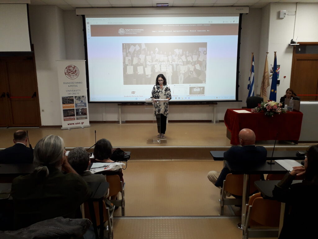 Την παρουσίαση της προσωπικότητας και του επιστημονικού έργου της τιμώμενης έκαναν οι Καθηγήτριες του Τμήματος Στεφανία Καλογεράκη και Βασιλική Πετούση, οι οποίες σκιαγράφησαν τη σταδιοδρομία της κας Μ. Κούση Λεκάκη και το σημαντικό επιστημονικό και ερευνητικό της έργο που τυγχάνει διεθνούς αναγνώρισης και διακρίσεων. Παράλληλα, αναδείχτηκαν η συμβολή της στην ακαδημαϊκή κοινότητα της χώρας και την επιστήμη γενικότερα, αλλά και η σημαντική και πολυεπίπεδη προσφορά της στο Τμήμα Κοινωνιολογίας και το Πανεπιστήμιο Κρήτης σε διδακτικό και διοικητικό επίπεδο.