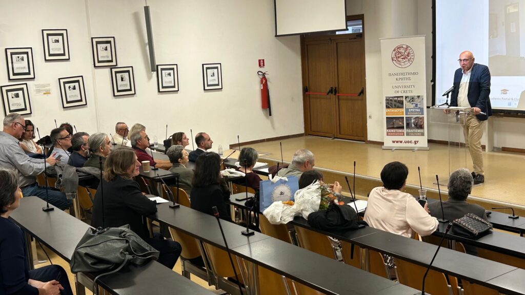 Σε κλίμα βαθιάς συγκίνησης, θερμής αναγνώρισης και εκτίμησης της προσωπικότητας και του έργου της Καθηγήτριας Μαρίας Κούση Λεκάκη, το Πανεπιστήμιο Κρήτης και το Τμήμα Κοινωνιολογίας της απένειμαν τον τίτλο της Ομότιμης Καθηγήτριας του Τμήματος Κοινωνιολογίας του Πανεπιστημίου Κρήτης. Η τελετή πραγματοποιήθηκε χθες, Δευτέρα 20 Οκτωβρίου 2025 ώρα 18:00 μ.μ., στο αμφιθέατρο Δ7 στην Πανεπιστημιούπολη Ρεθύμνου, παρουσία του Πρύτανη του Ιδρύματος Καθηγητή Γεώργιου Κοντάκη, του Αντιπρύτανη Καθηγητή Γεώργιου Σταματόπουλου και του Κοσμήτορα της Σχολής Κοινωνικών Επιστημών Καθηγητή Νικόλαου Βαφέα, μελών της πανεπιστημιακής κοινότητας, συγγενών, φίλων και συναδέλφων της τιμώμενης.